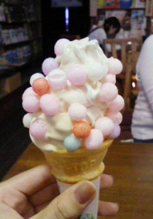 しょうゆソフトと和さん盆?ソフトのミックスを食べた。