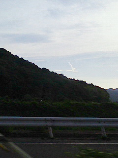 飛行機と帰りに見つけたホウキに乗った魔法使いの形をした雲です。